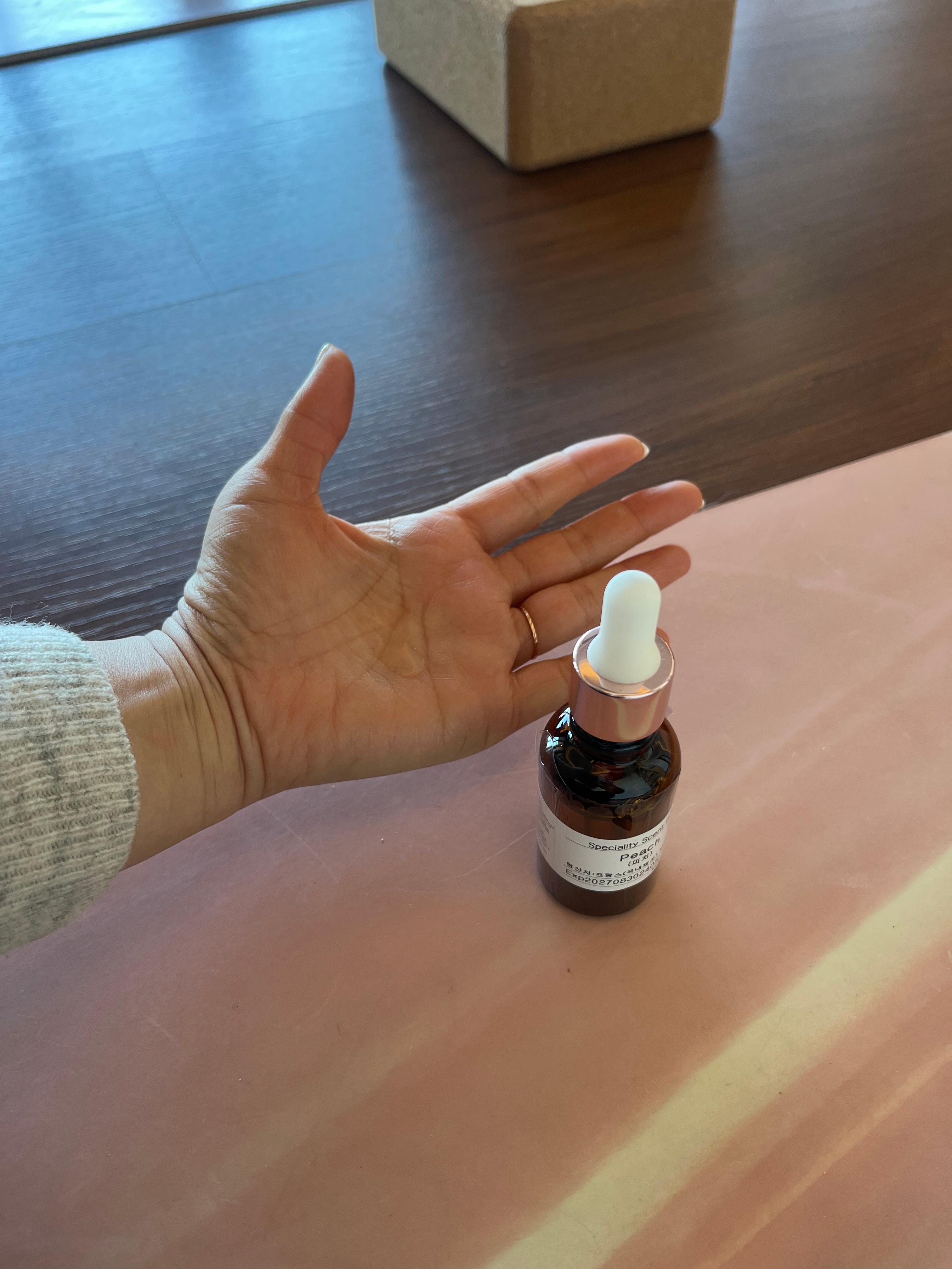 오늘은 처음에 피치 아로마를 손바닥에 두방울 떨어뜨리고 손을 비벼서